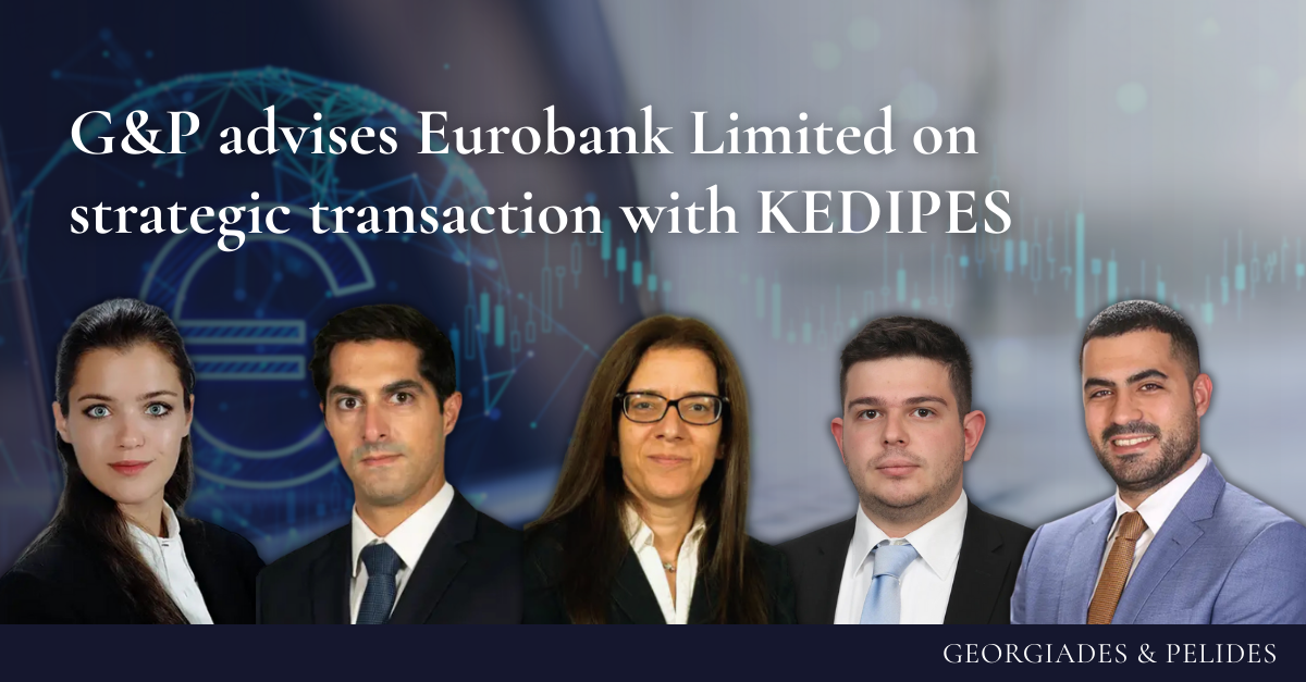 The Georgiades & Pelides team is pleased to have advised Eurobank Limited on the successful completion of a complex and highly significant transaction with KEDIPES Ltd. The transaction involved the repurchase of a loan portfolio and the termination of existing obligations between the parties relating to the sale of the banking operations of the former […]